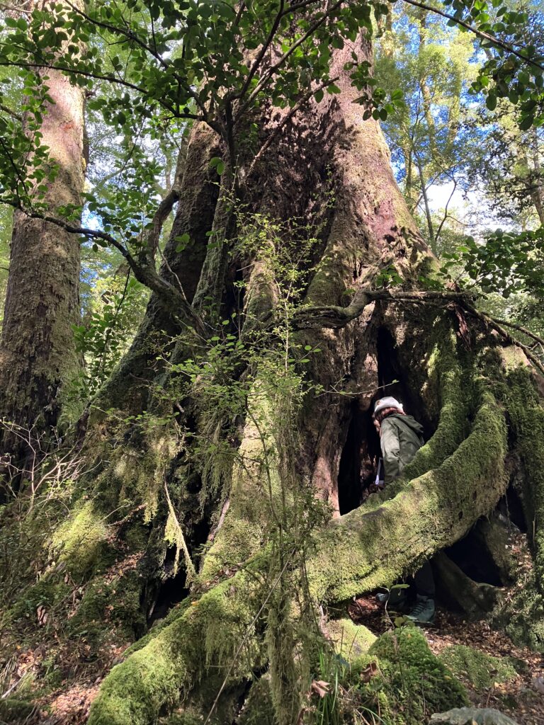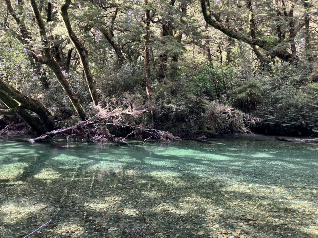 途中、赤ブナの大きな大きな木を見るためにオフトラックに入ったり、サイドウォークであるwetlandに立ち寄ったり、DOCの小屋を覗いてみたり。おしゃべりしながら晴れの日の森歩きを十二分に楽しみます。
