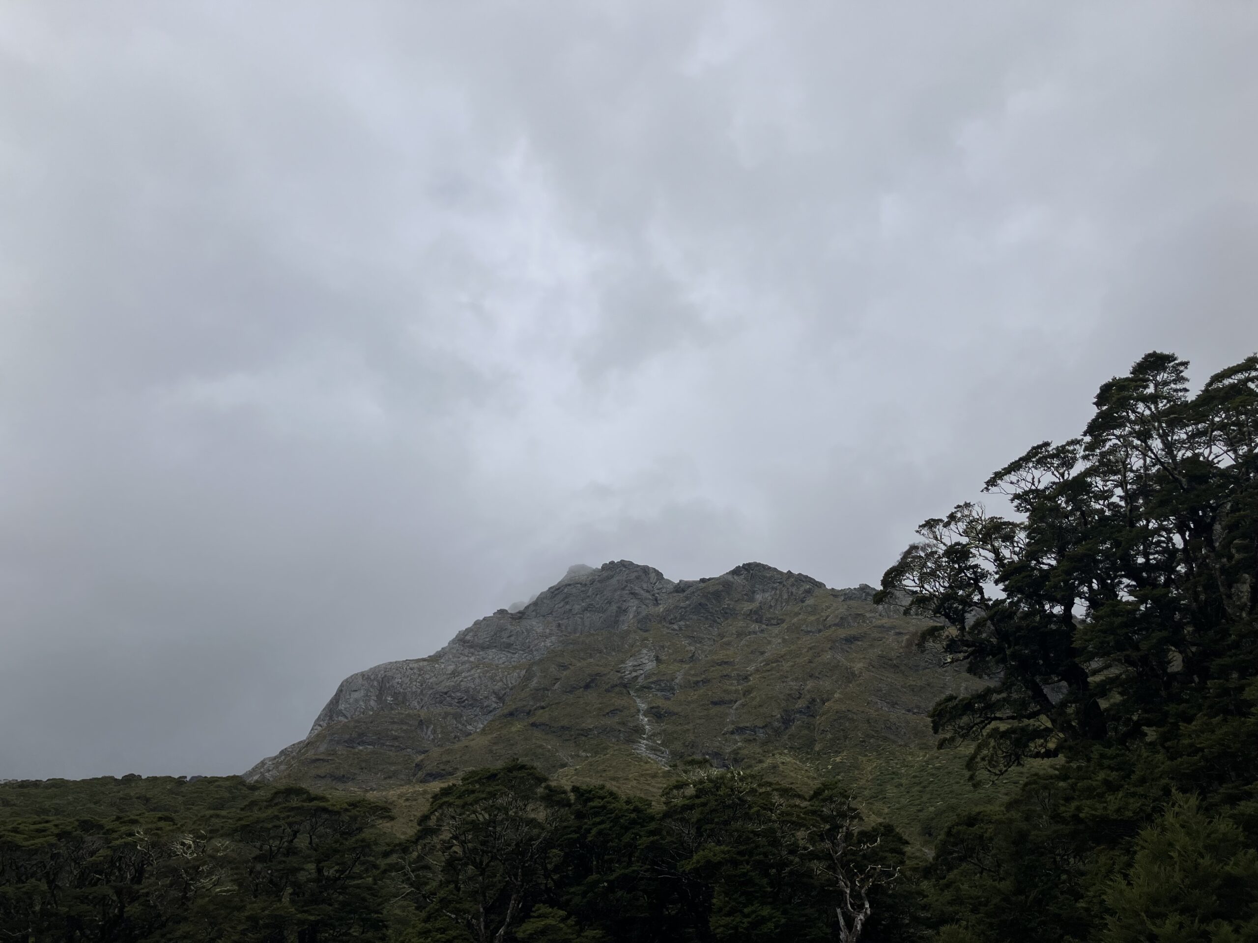 98日目から雨が続くM小屋周辺。今日の朝も曇り空で視界は悪く、お天気はよくありません。小屋にはアテンションボードと呼ばれる大きなボードがあり、小屋の外に行く場合は必ずボードに日にち、名前、行き先、帰宅時間、などなど書かなければなりません(このシステムは日本にあっても良いと思う)。そのボードには、NO  OUTSIDE ACTIVITIES と書かれています。お天気が悪いので遠出は禁止ということです。