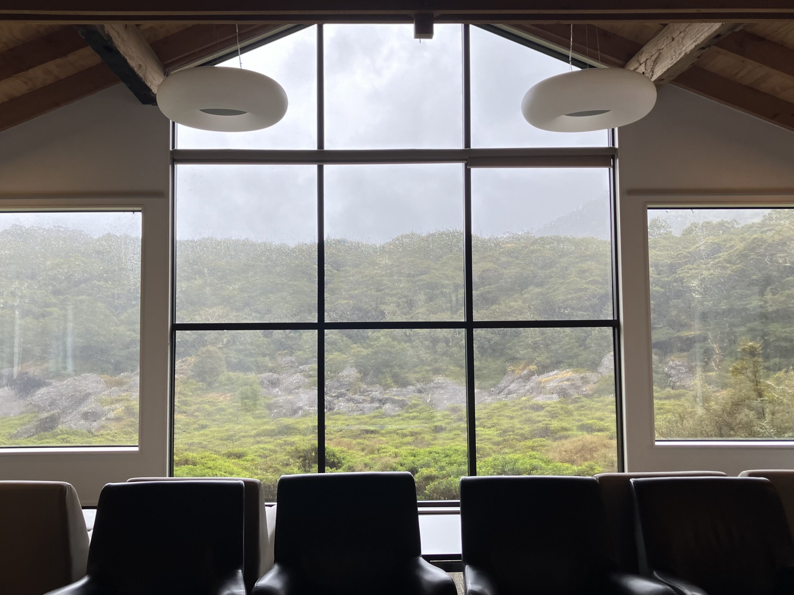 するとマネジャーのリンが私のところへてくてくとやってきました。「昨日泊まったお客さんだけど、今稜線上のシェルターにいて、天気が悪いから足止め中みたい。今のところ4パターン考えられて、天気の回復を待ってヘリでシェルターから次のF小屋へ移動、別のヘリが着陸できる場所まで移動してそこからヘリで次のF小屋へ移動、M小屋まで戻ってきてヘリでF小屋に移動、M小屋に戻ってきて宿泊(=つまり昨日今日2泊するということ)。2、3時間以内にはどうなるか決まるはずだけど、最悪の場合に備えて、夕食サービスの準備をしてほしい」