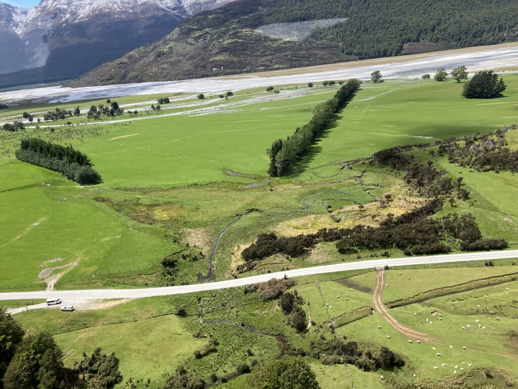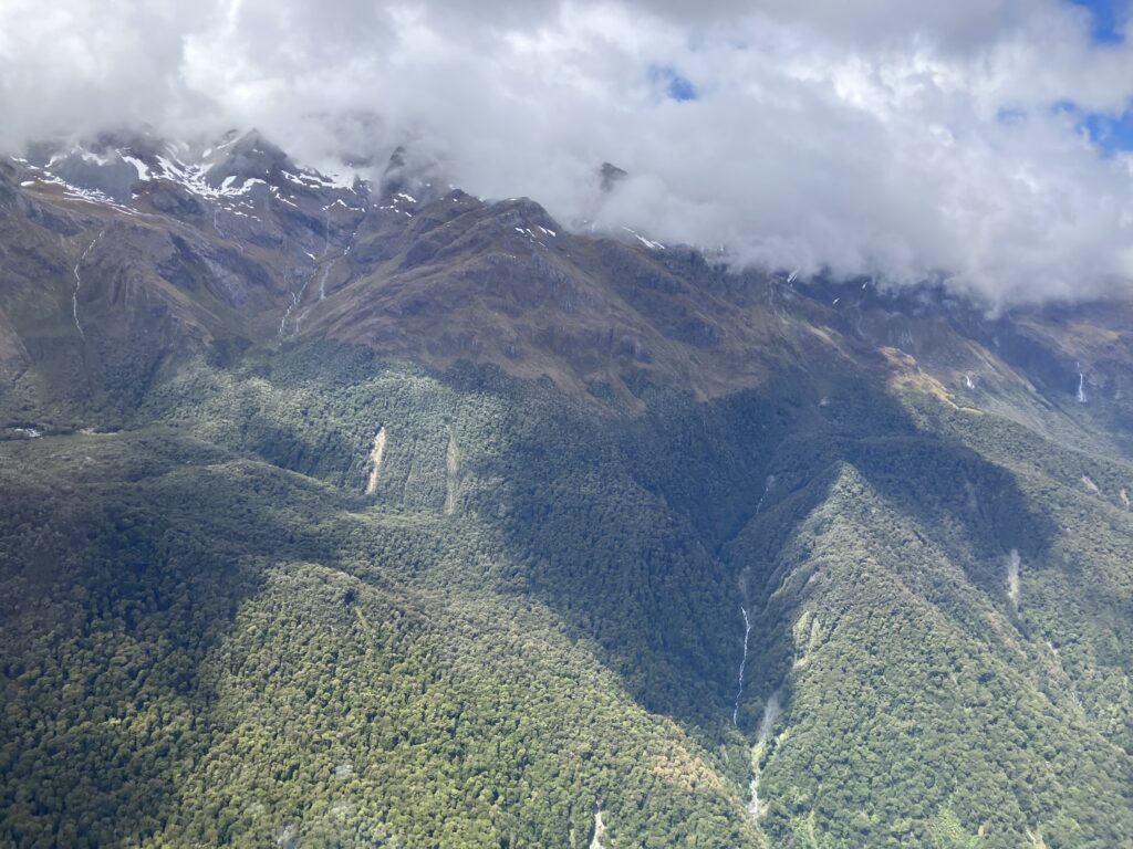 ヘリコプターからの眺めは、何度も何度も書きますが、情報量が多すぎて頭がバグります。フワッと開いた後いつもとは違う方向に飛び始めたので、え!どこに行くんだろう?え、あれってあの山、これってこの湖?この川は?え?ん?あ?えー!あそこにもトラック(道)がある?こっちにぐるっと回ってるから小屋はあの辺のはず?写真撮らないと?あれってあの滝?は?えーーー!写真写真!え?ん?んんん!