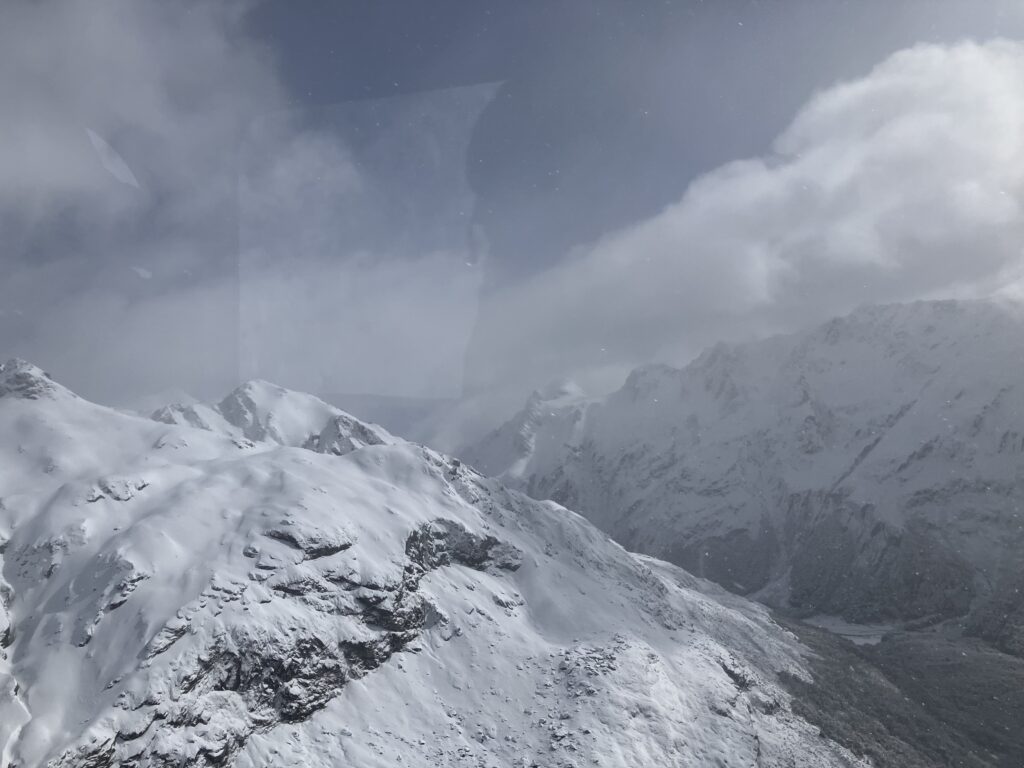 10:00頃無線が入り、私たちM小屋スタッフが移動できる事に。ヘリに、私とブリッジ、エリーにエリーのパートナーであるフランス人ルイ、カナダ人のオリビアの5人が乗り込んで、小屋へと出発です。