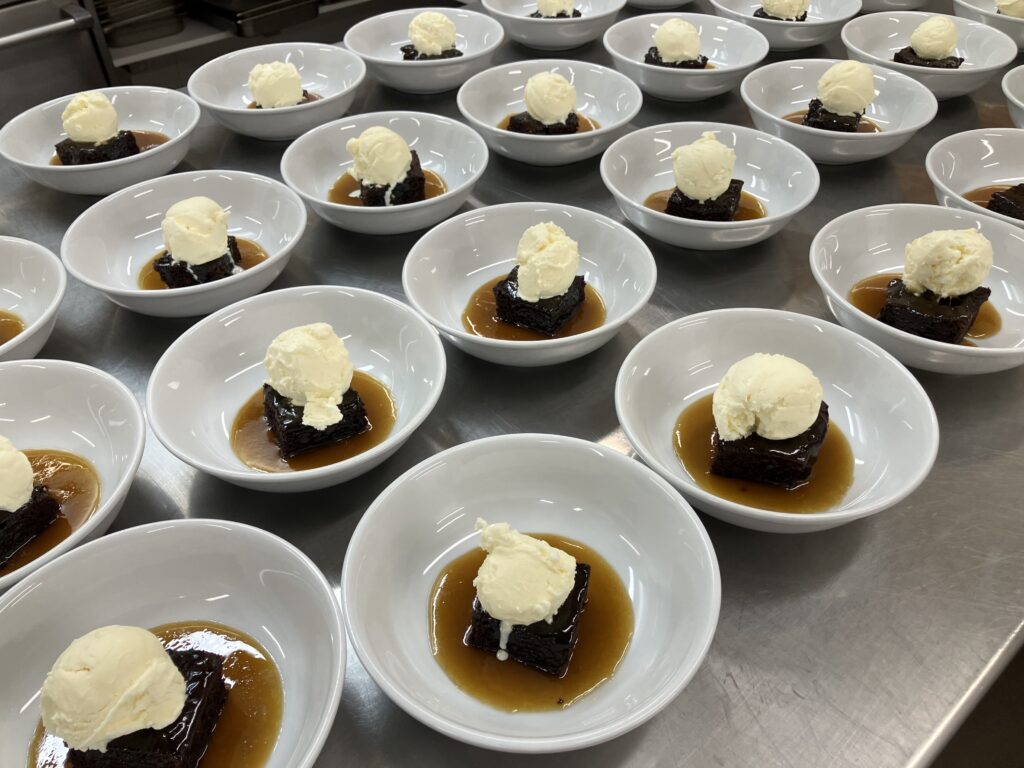 ▲デザートのデーツプディングはビーガン。アイスクリームにバタースコッチソースをかけます