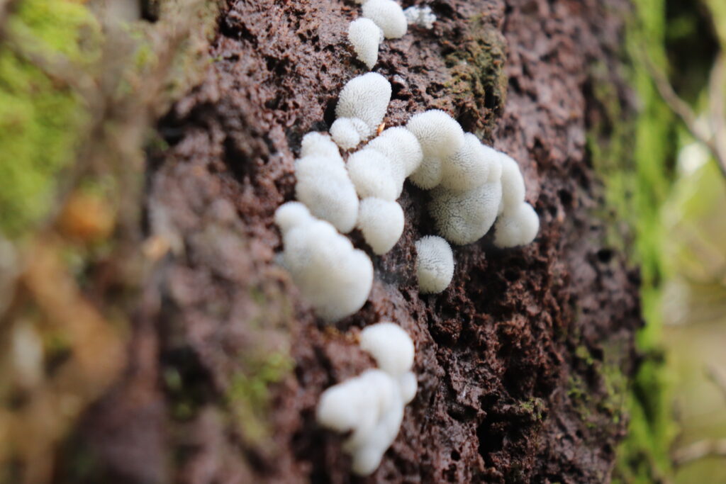 小屋から2km以上は歩いたでしょうか。ゆっくり植物観察をしながら歩いたので、時間をかけて歩きました。おかげで、人生初!これぞ粘菌!という粘菌を発見。嬉しくてわーっと叫んでしまいます!