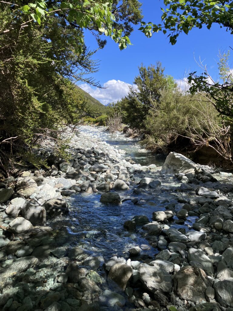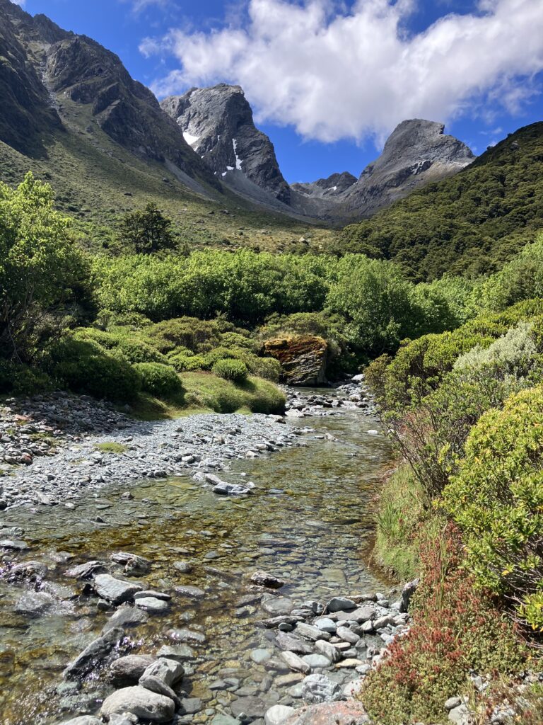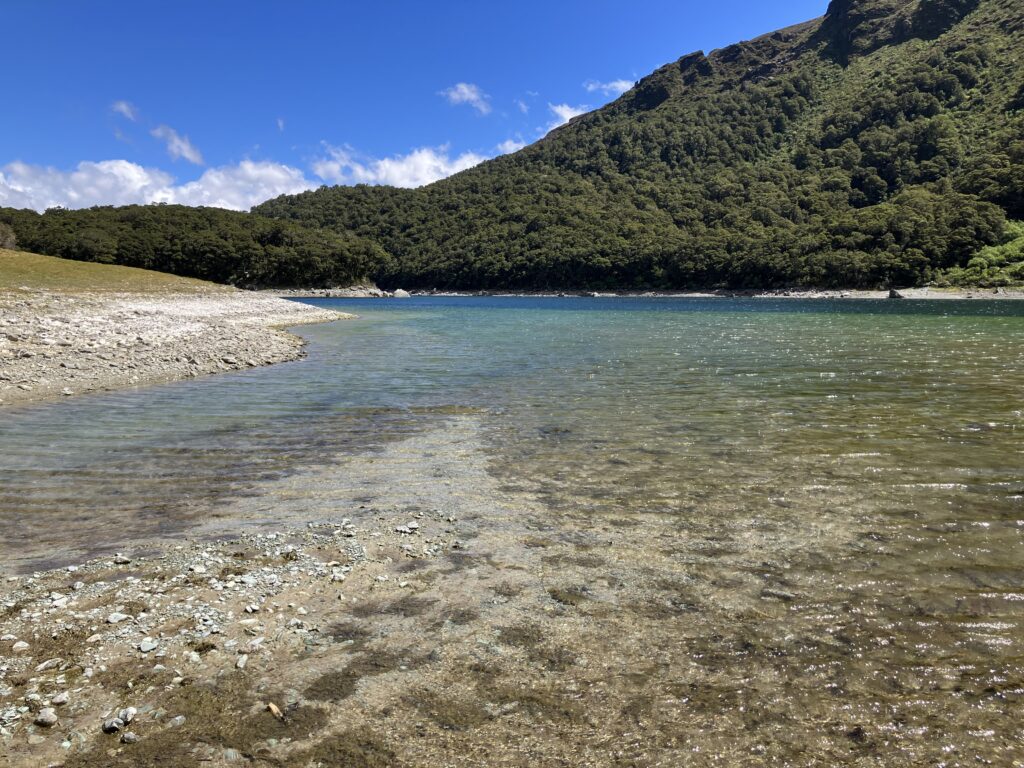 79日目は、お天気が良いので休憩時間中に自分をなんとか奮い立たせ、湖へ散歩に出かけました。先週、F小屋にクララと行った時に、F小屋のスタッフが休憩時間走ったり散歩に出かけていたので、私も外に出ないと!とシーズン半分を過ぎて今更ながら気づいたのです(笑)。それはクララも同じで、彼女はOPC=オーシャンピークコーナーまで行くと言っています。森林限界を超えて海が見える地点まで登って下るとのことです。