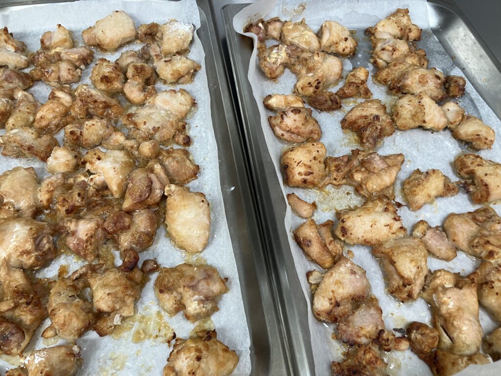 ▲ヤムニョムチキンのチキンはオーブンで先に焼きます