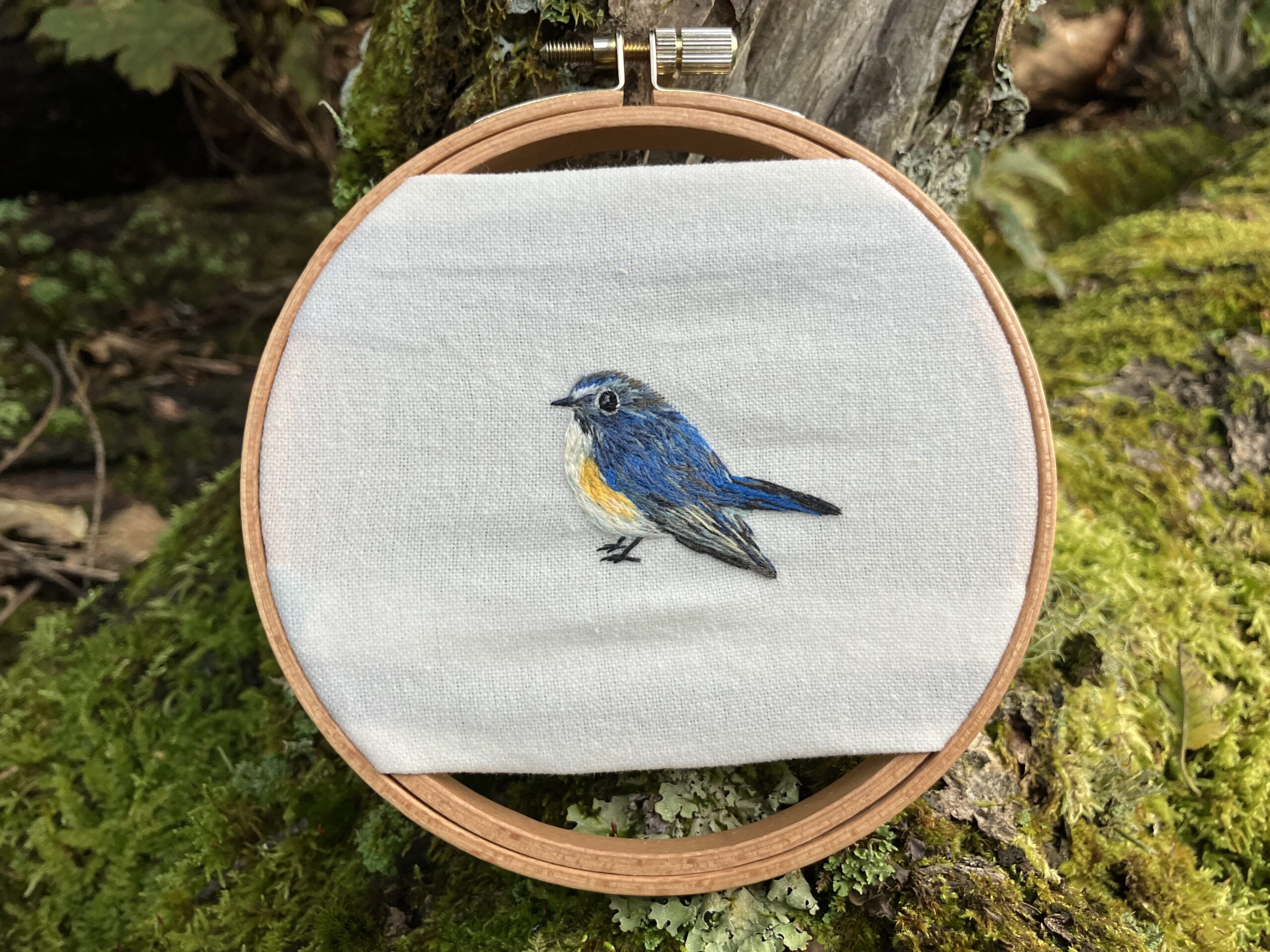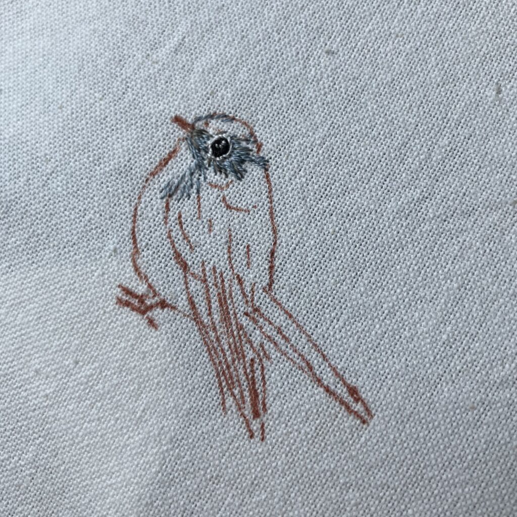 なので、刺繍するなら鳥にしよう!と言うことで彼女のインスタのアイコンの写真を布に模写して、刺繍してみました。お休みの日に部屋にこもって数時間ぶっ続けで刺繍、無我夢中になれて楽しかったです!!!