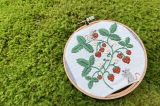 足をつけたら、布を水に浸してチャコパーの線を消し、乾かします。そして外に持っていって、写真撮影!刺繍の撮影は外の光で、そして草木を入れるととても良い感じです。馴染みますね。