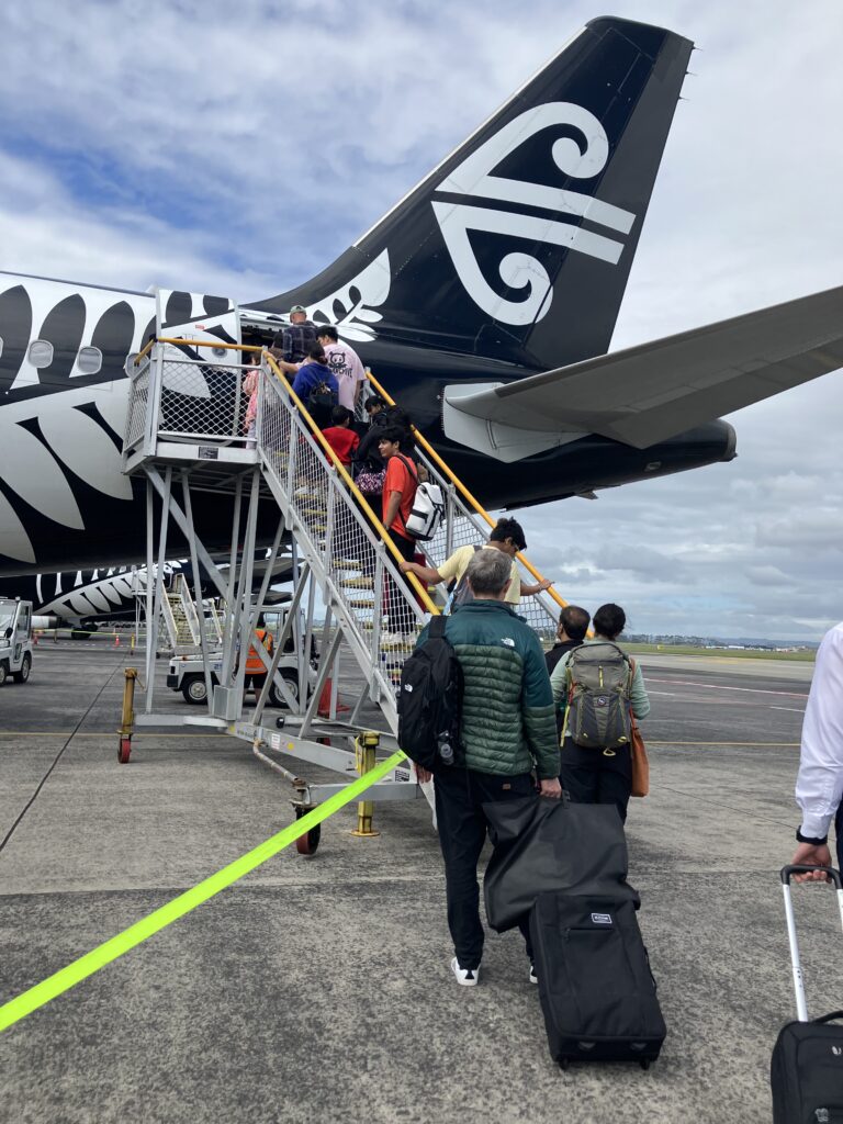 今回、ビザはオンラインで申請していて、パスポートの中のICチップから情報が読み取れるので出国審査では無人、機械にピッとパスポートをかざすだけで飛び立つことができます。ニュージーランドに到着してからも、無人。ピッ。出国スタンプも入国スタンプも押されません。