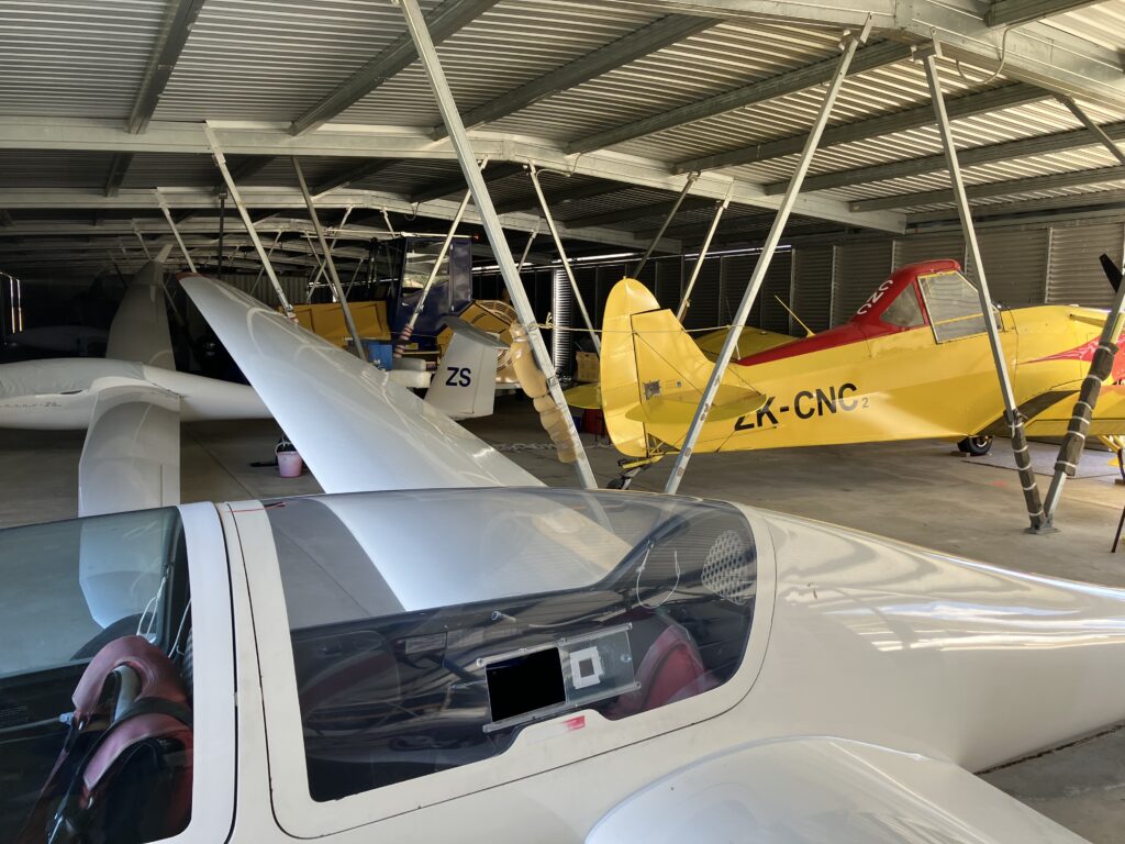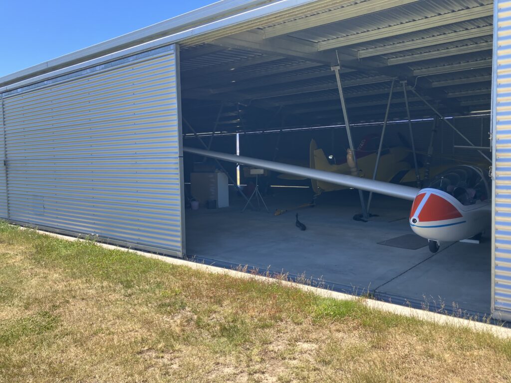 天気に関してのブリーフィングが終わった後は、私の2日間のインストラクターとなるイギリス人のジェームスに付き添い、早速グライダーが眠る車庫(というのでしょうか?)へ向かいます。デンマーク人の彼には別のインストラクターがつき、私は朝彼に挨拶した後、夕方コースを終えるまで見かけることはありませんでした。無事飛んだのかな?!