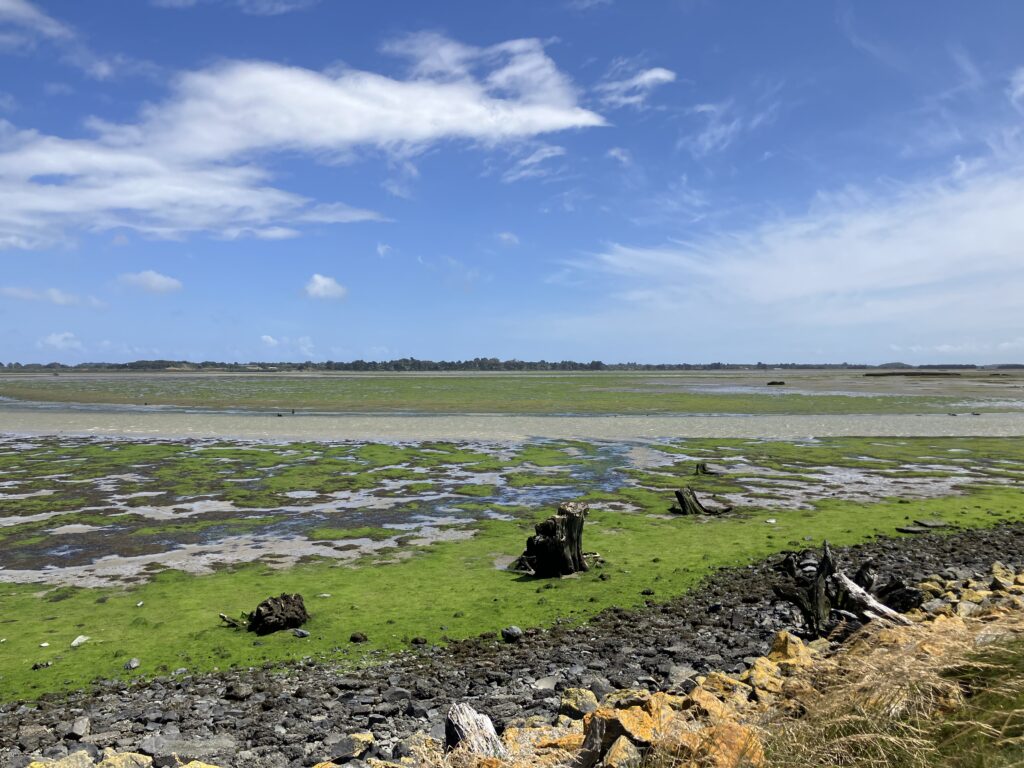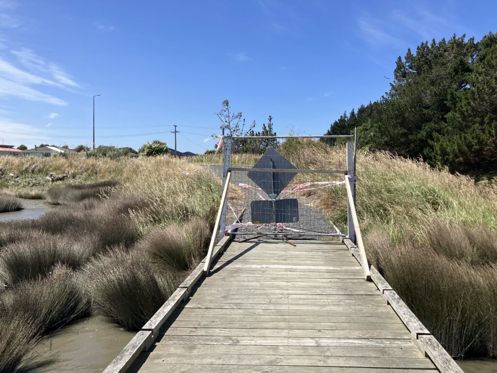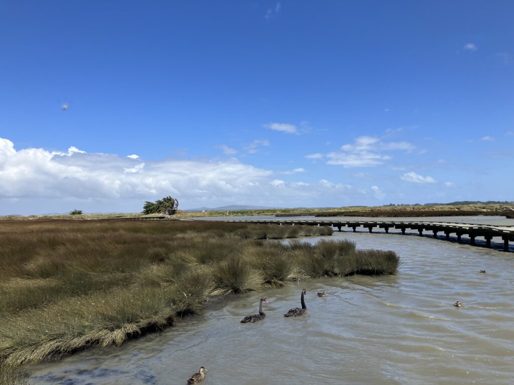 お腹を満たし、少しホステルで休憩したあとは、エスチュリーウォークへ。ニュージーランドにはあらゆるところに“⚫︎⚫︎トラック”や、“⚪︎⚪︎ウォーク”と言われるような散策できる場所があり、DOC(日本で言う環境省)のサインがあります。街中から車でエスチュリーウォークまで10分程度。海沿いでかなり風が強いです。